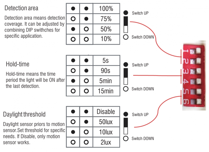 UL,FCC,TUV,RED,CE,ROHSCảm biến chiếm dụng công tắc vi sóng 120-277VAC cho đèn thương mại