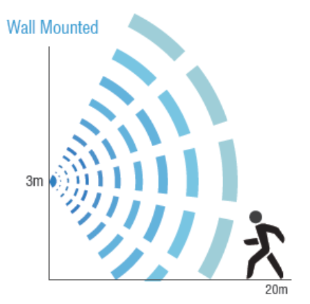 Phạm vi phát hiện, Tối đa ø14m (lắp trần), Tối đa 20m (lắp tường)