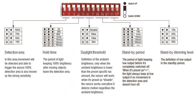 Cảm biến chuyển động vi sóng ánh sáng ban ngày có thể điều chỉnh độ sáng 120-277VACKế tiếp: