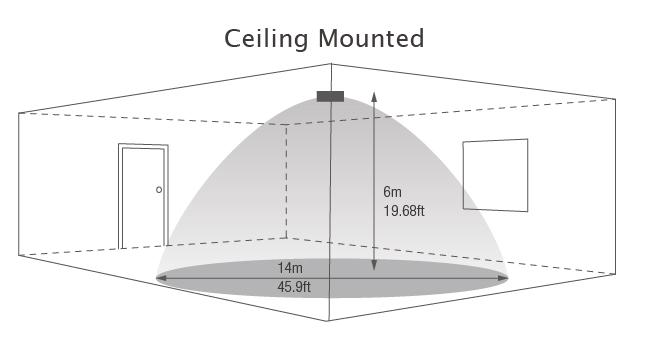 Phạm vi phát hiện | Tối đa ø14m (lắp trần), Tối đa 10m (lắp tường) |