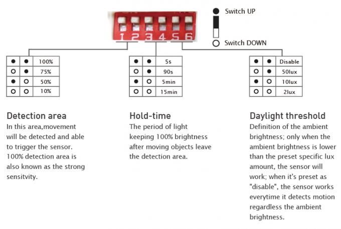 Ngưỡng ánh sáng ban ngày | 2Lux/10Lux/50Lux/Tắt |