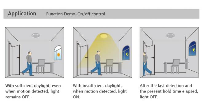 UL,FCC,TUV,RED,CE,ROHSCảm biến chuyển động vi sóng bật tắt với tần số 5,8 GHz cho đèn trần